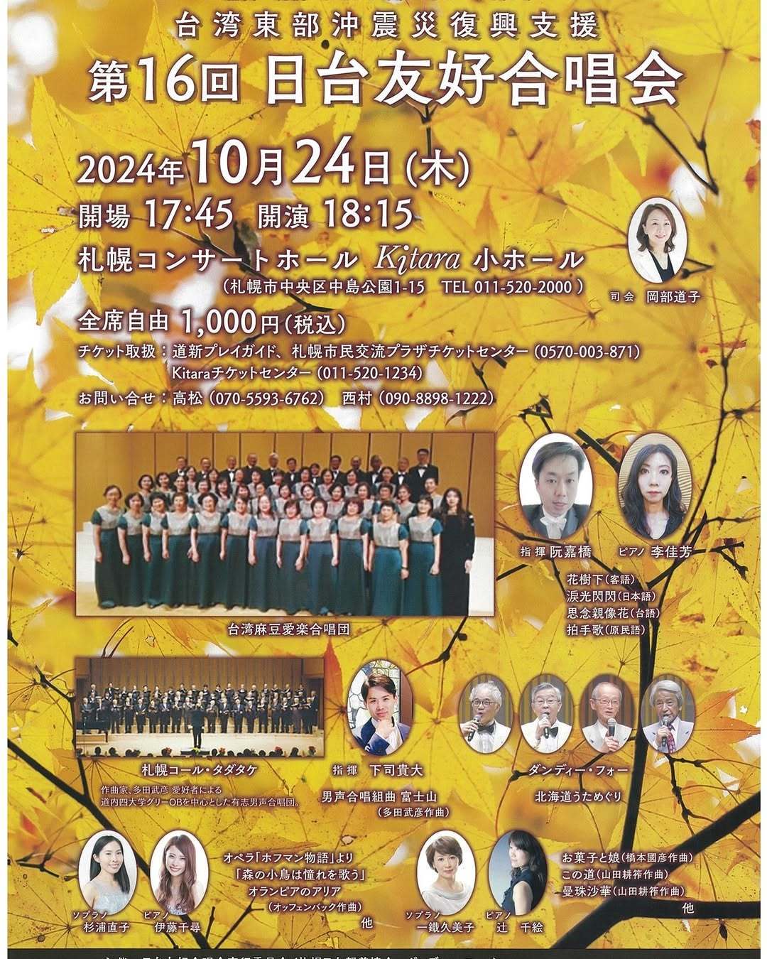 10/21(金)第14回日台友好合唱会 フレンドリーコンサート〜日台 歌の架け橋を渡る