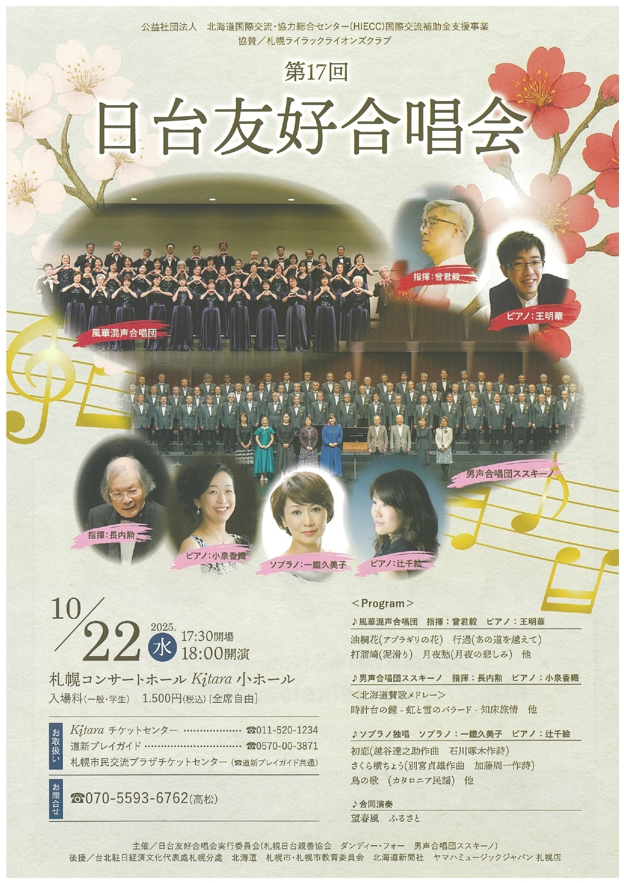 お問い合わせ 日台友好合唱会実行委員会・高松 070-5593-6762