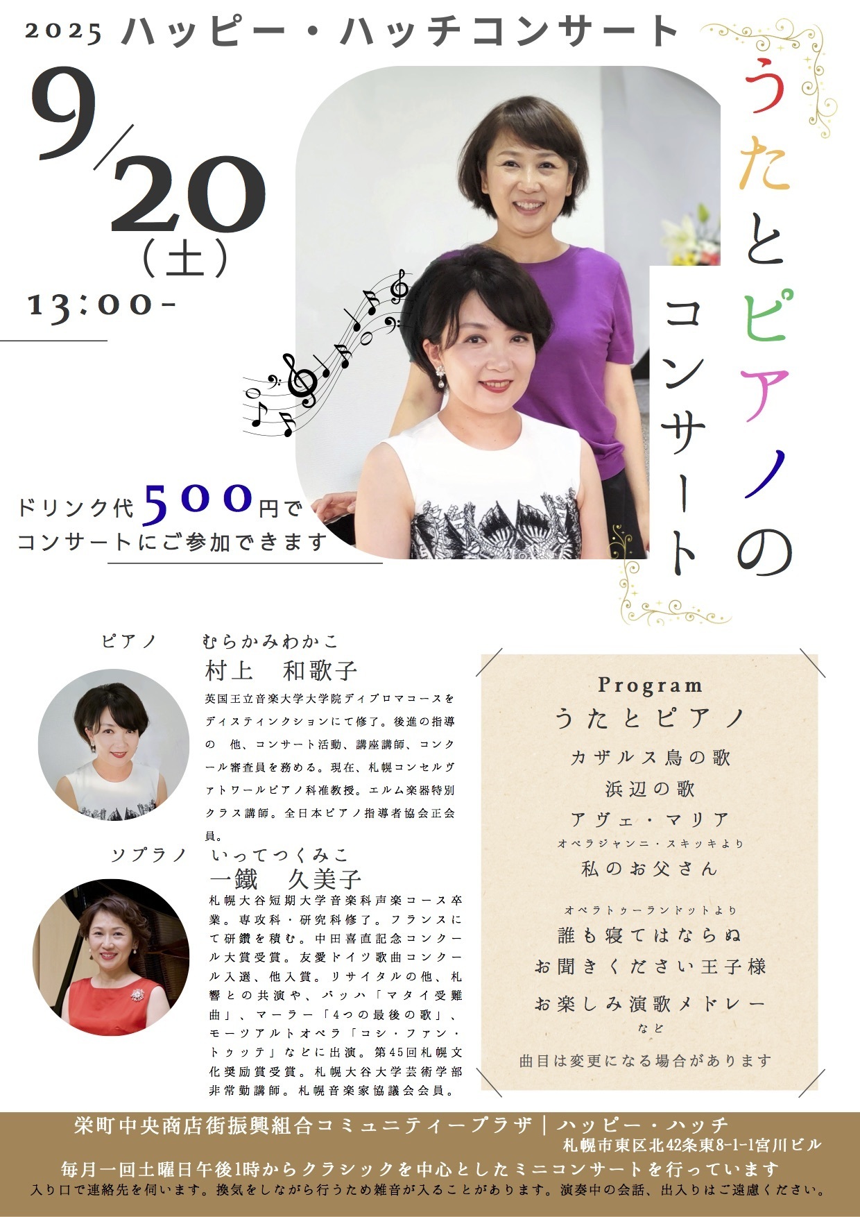 9/9(土)ハッピーハッチコンサート歌曲&ピアノ クラシックコンサート
